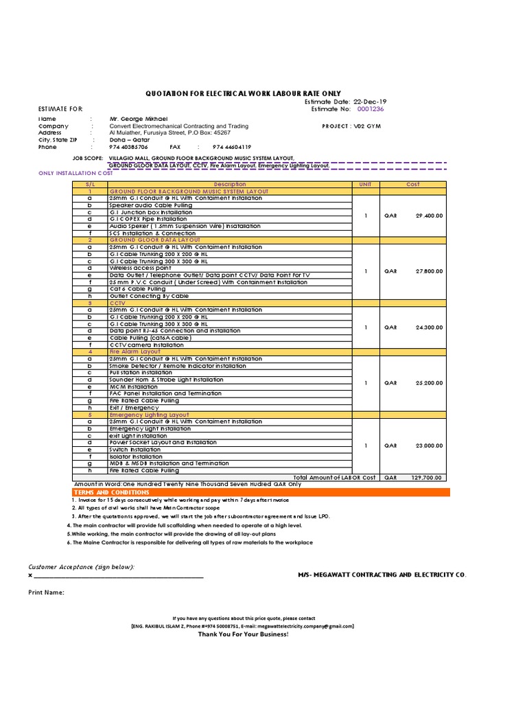 Electrical Estimate Proposal Template in Excel Electrical Contractor