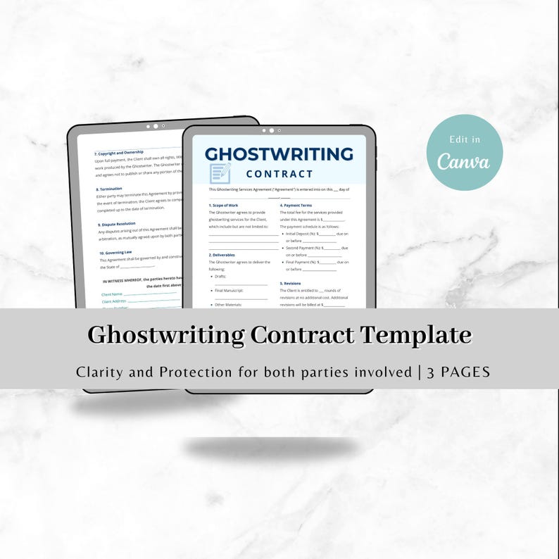 Ghostwriter Contract Template Ghostwriting Contract Customizable