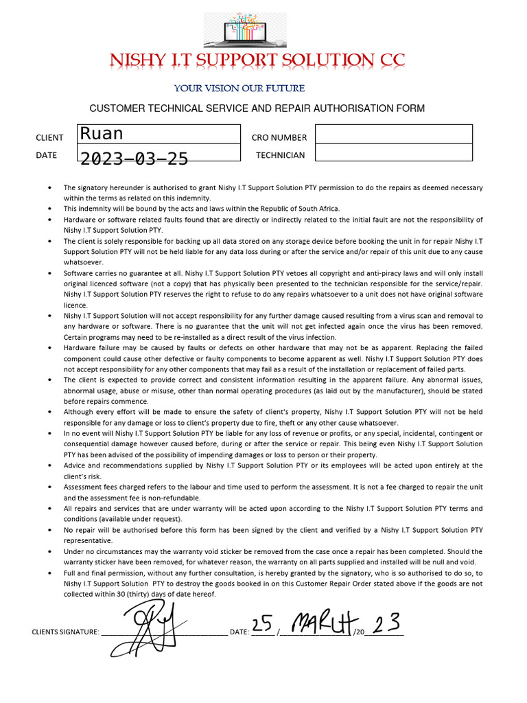 Indemnity Form Template 2023 03 25 Download Free PDF Computing