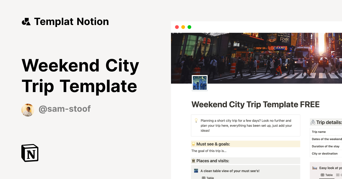 Weekend City Trip Template Templat oleh Sam Stoof Notion Marketplace