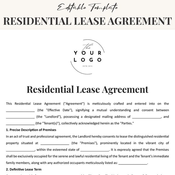 Residential Lease Agreement Template Etsy