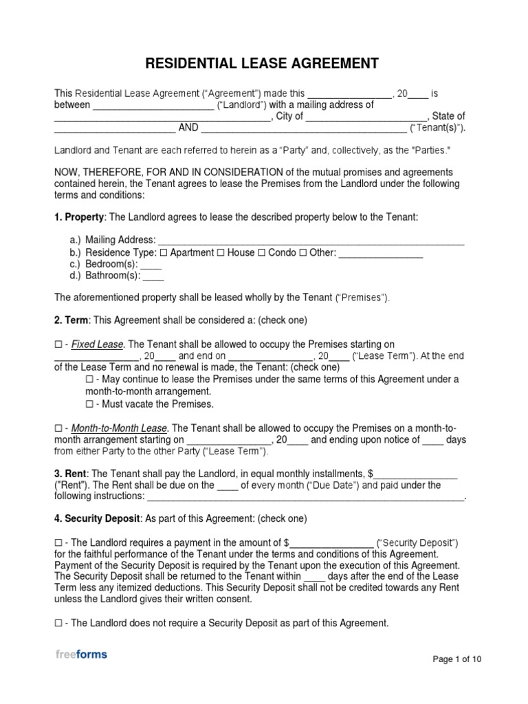 Lease Agreement Template Free Printable Documents