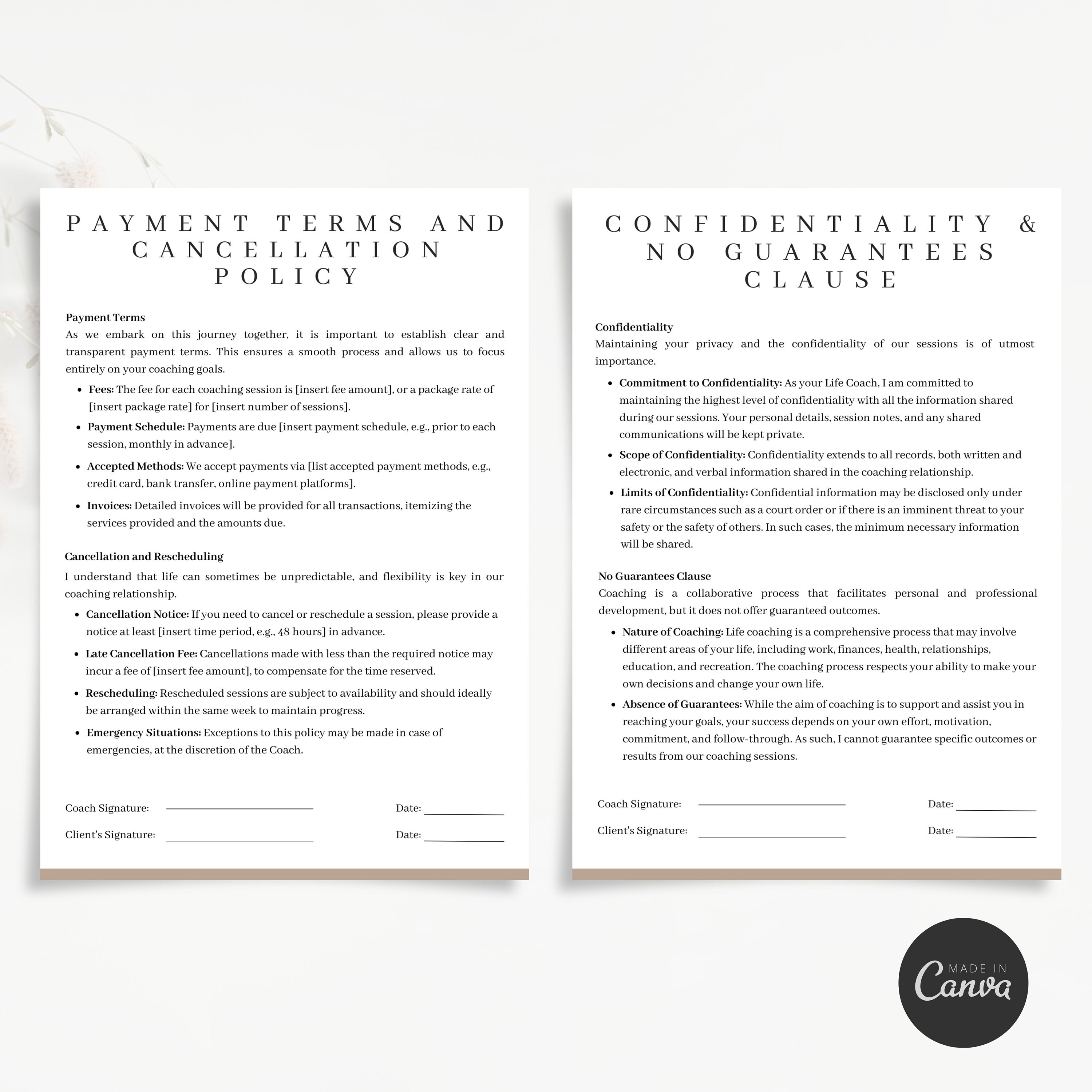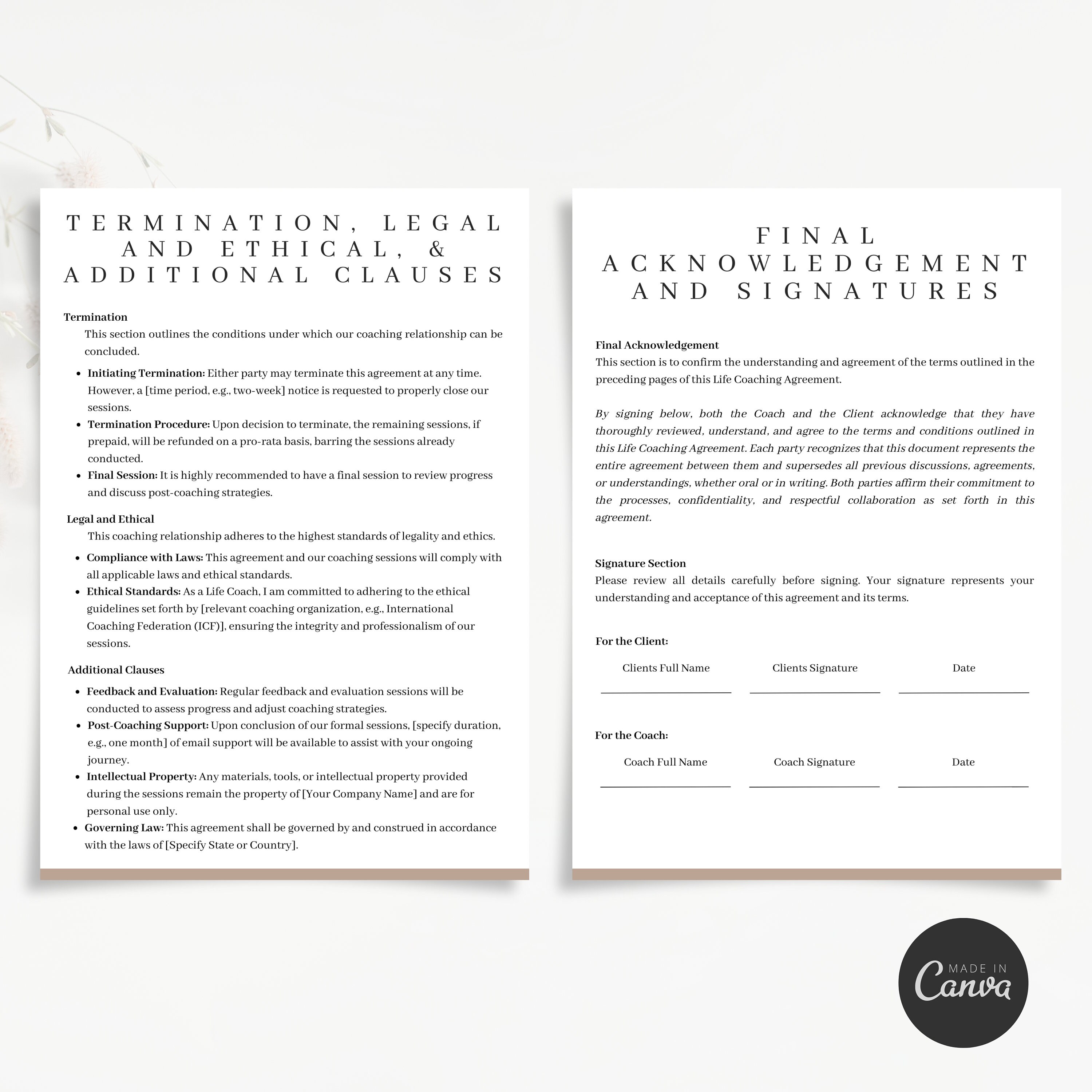 Life Coaching Contract Template Customizable Canva Template for Coaches