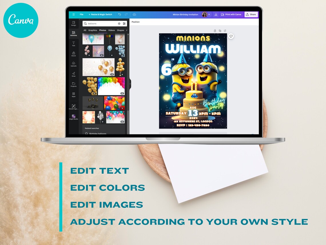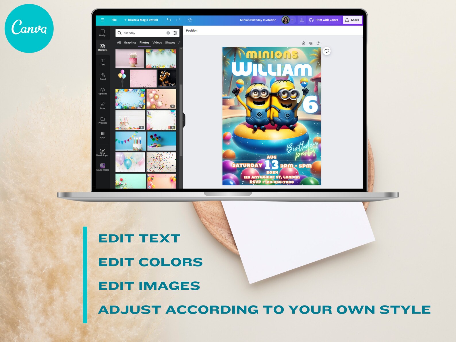 Editable Minion Birthday Invitation Minion Party Invitation Custom