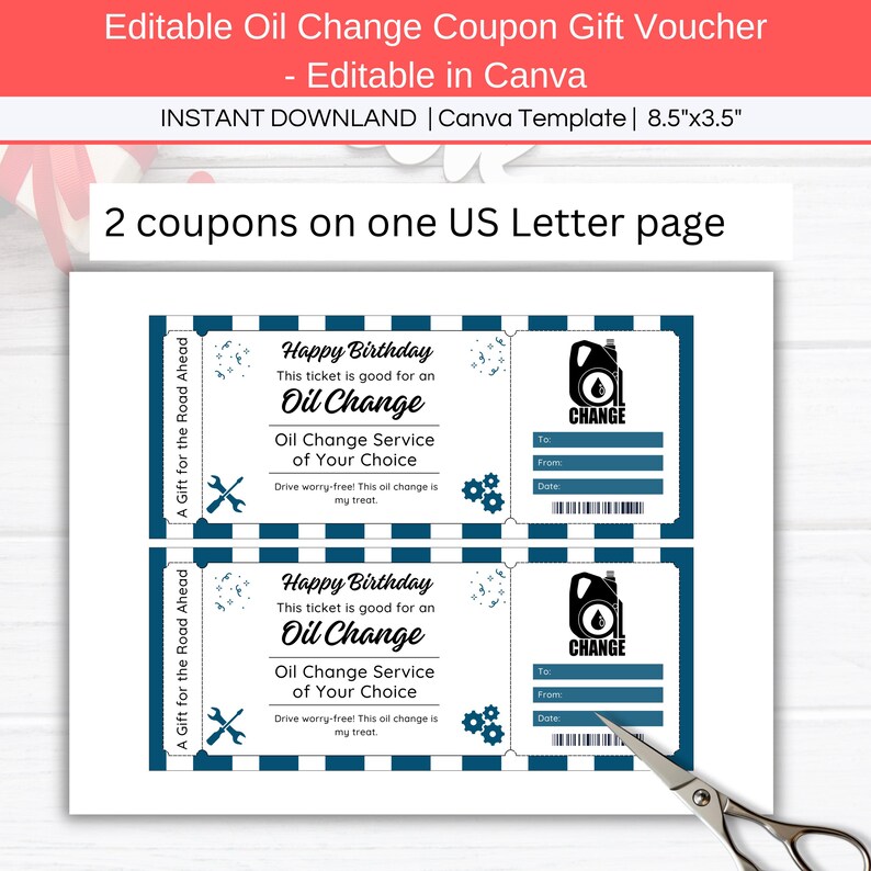 Oil Change Coupon Template Editable Car Service Maintenance Voucher