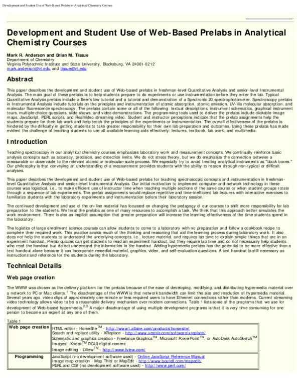 (PDF) Development and Student Use of Web Based Prelabs in Analytical