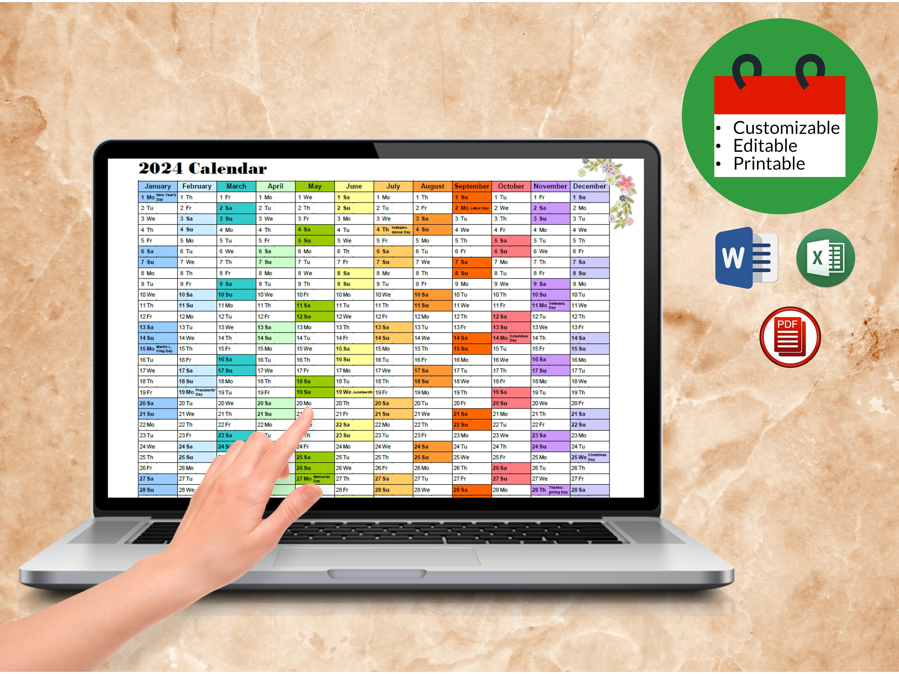 Free Editable Calendar Template 2024 Word Printable Templates Free