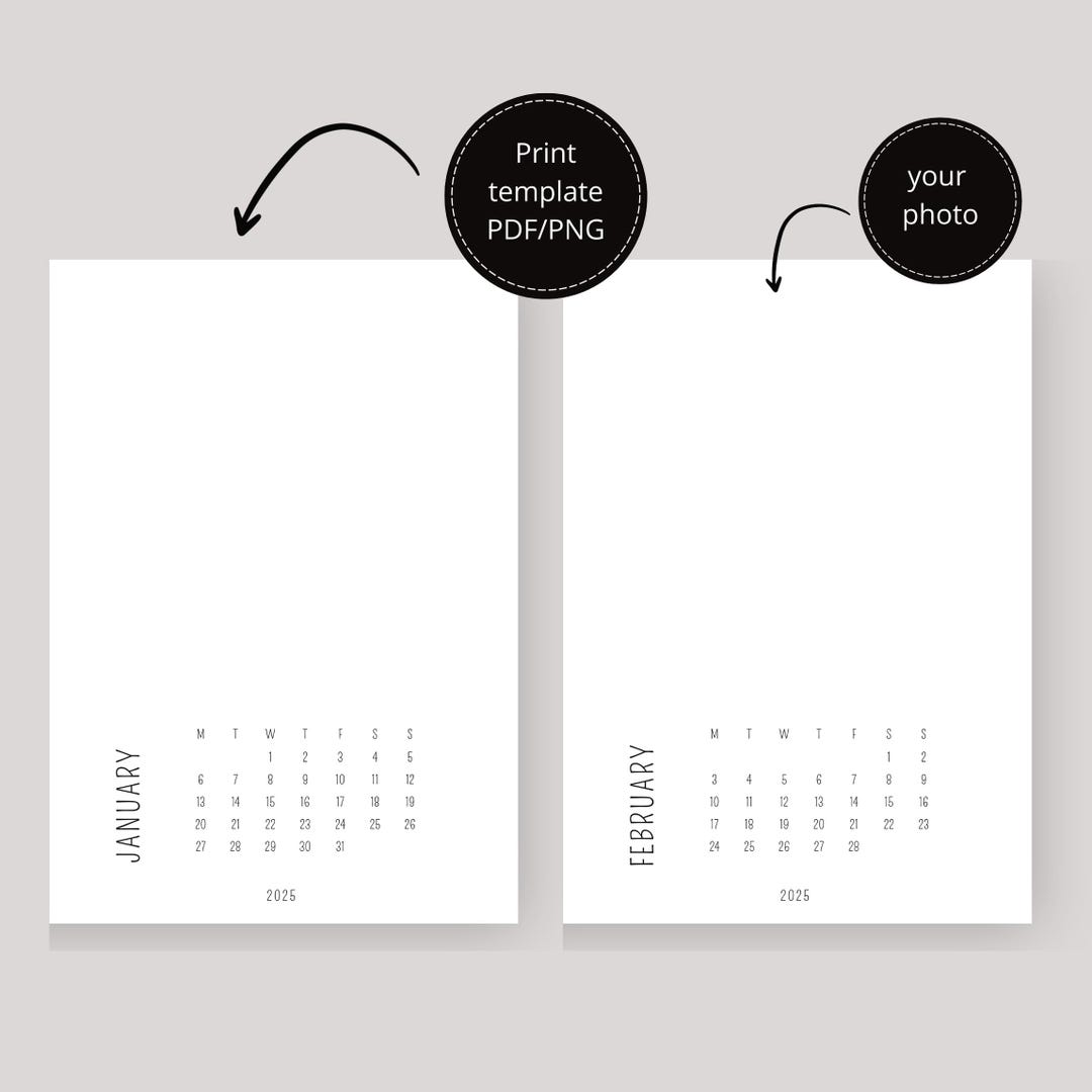 Print Template Calendar 2025 Digital Photo Calendar Editable to Print