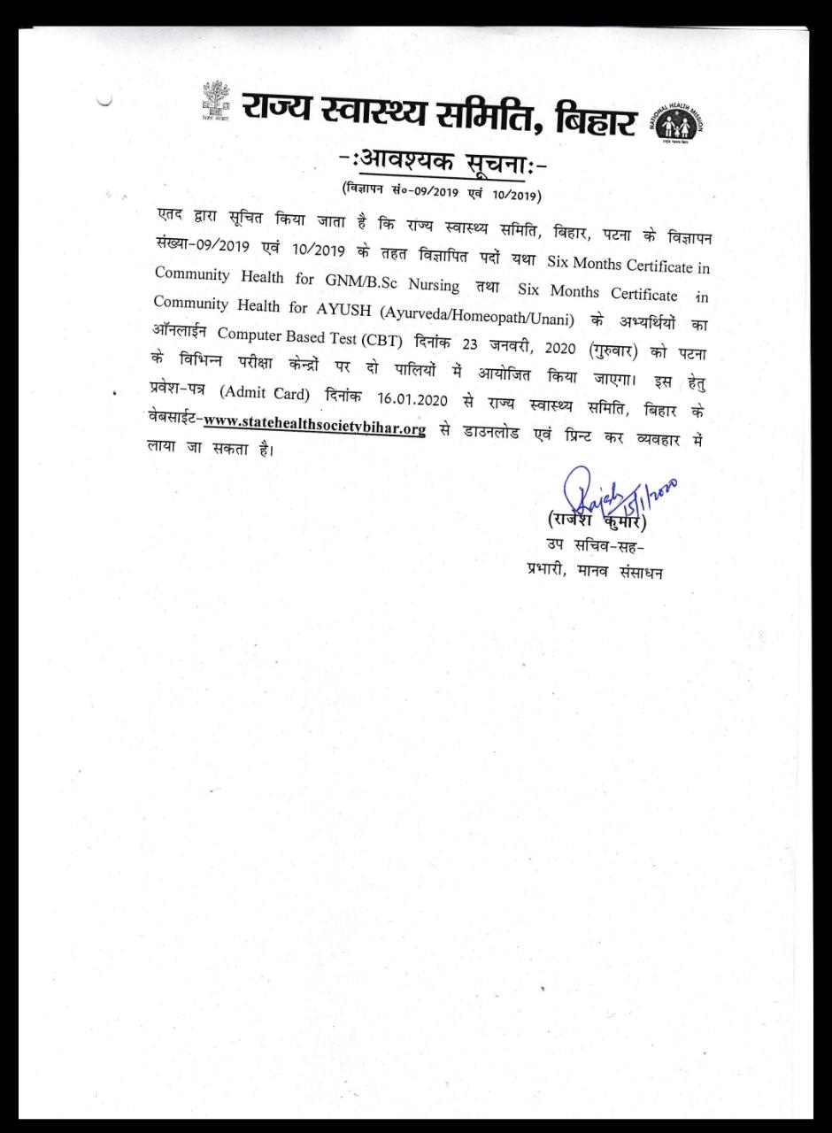 Online Test For Six Months Certificate In Community Health for AYUSH