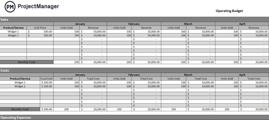Free Operating Budget Template