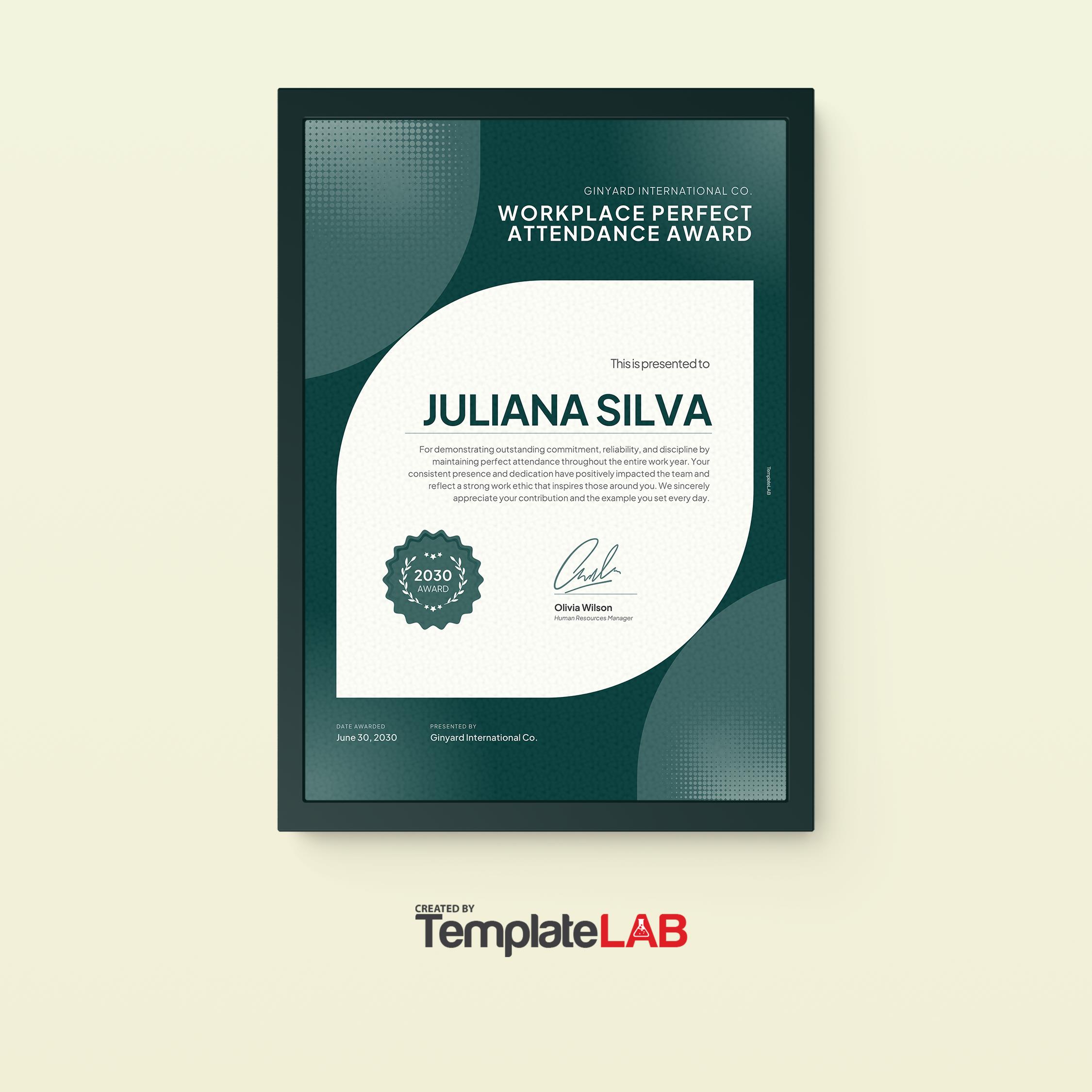 Free Perfect Attendance Certificate HR Template to Edit Online