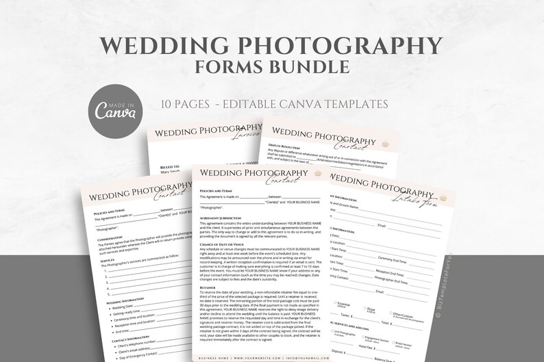 Editable Wedding Photography Forms Templates Bundle Incl Contract