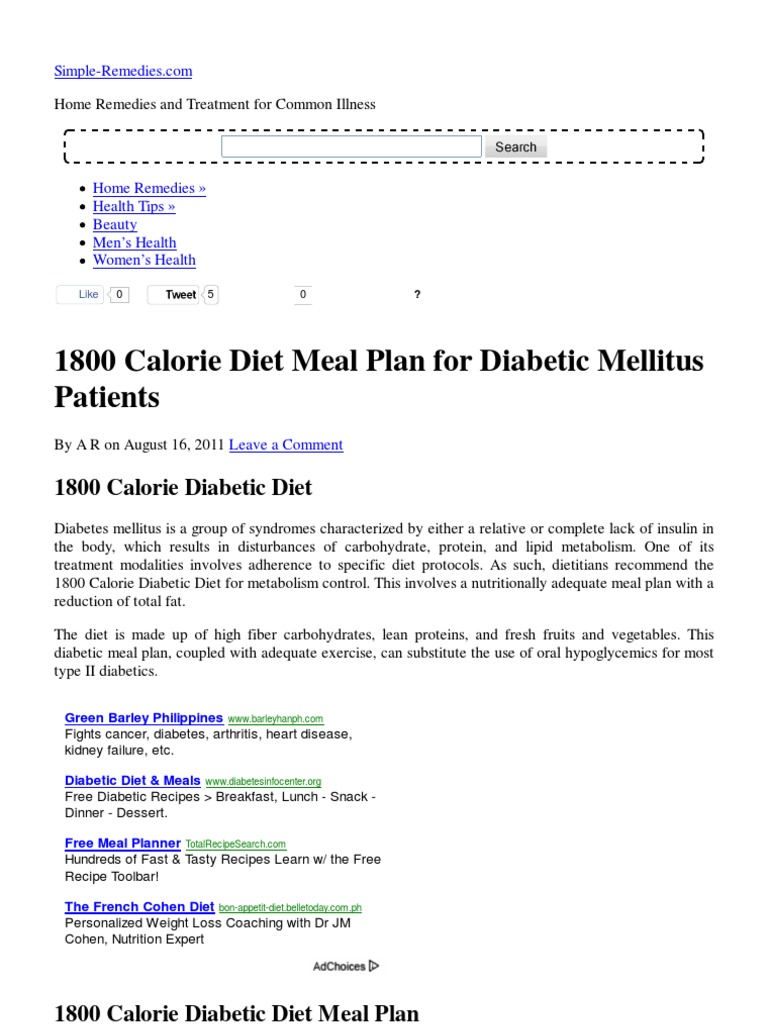 Printable 1800 Calorie Diabetic Meal Plan Printable diabetic diet