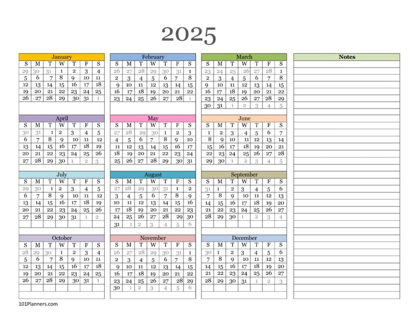 Free Printable Calendar 2025 With Space For Notes Printable 2025 Calendar
