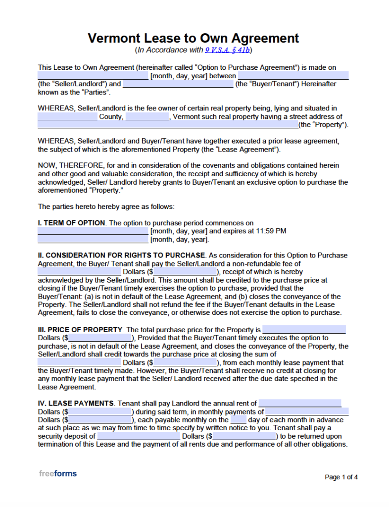 Free Vermont Rental Lease Agreement Templates PDF WORD