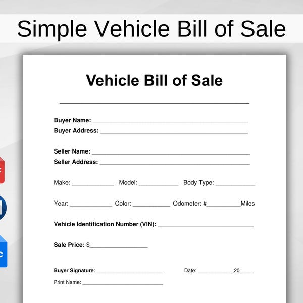 Vehicle Bill of Sale Florida Etsy