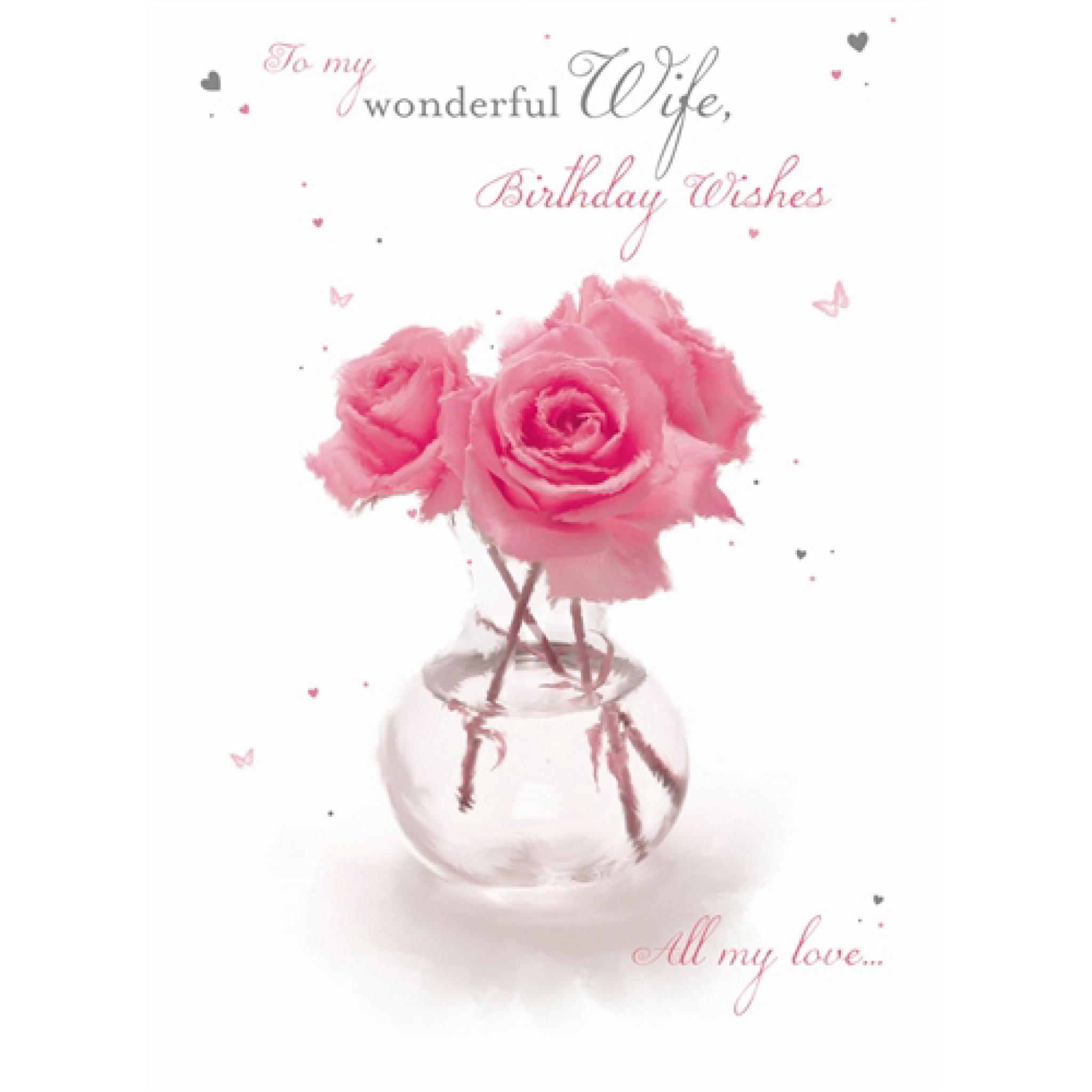 Pink Roses Beautiful Wife Birthday Card Funky Pigeon