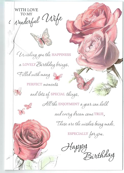 Wife Birthday Card with Red Roses and Sentiment Verse: Amazon co uk