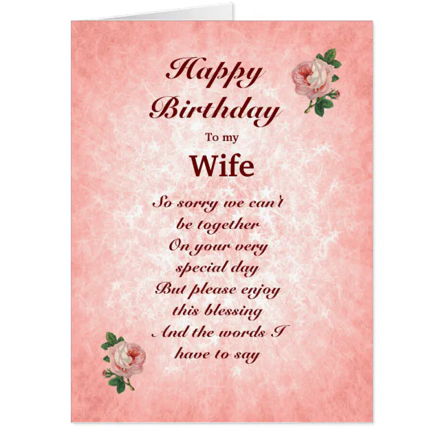 Wife birthday card sentimental verse roses Cards Through The Post com