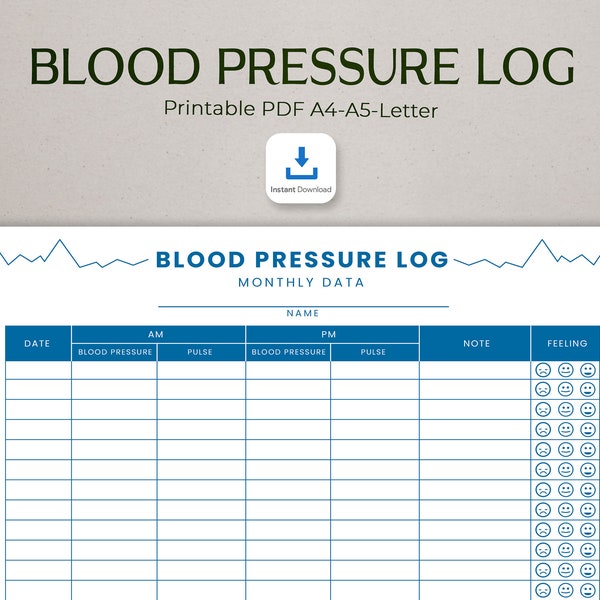 Free Printable Blood Pressure Log Etsy