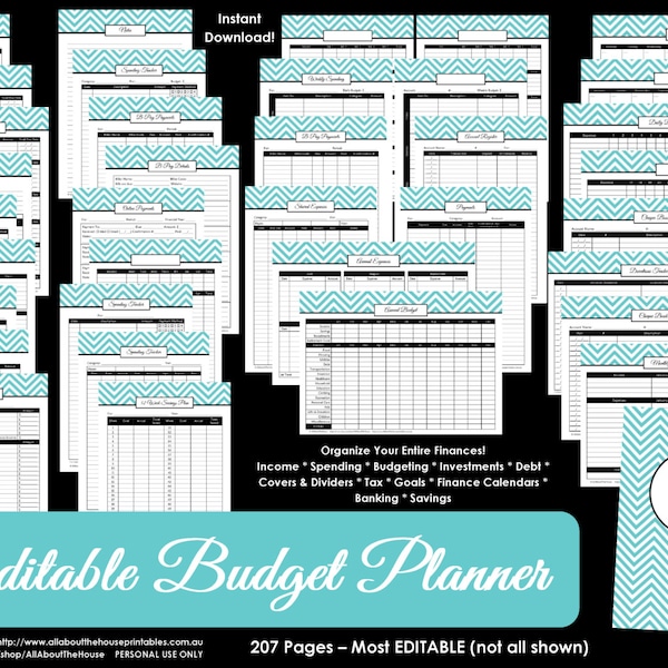 EDITABLE PINK Budget Binder Printable Household Binder Chevron Debt
