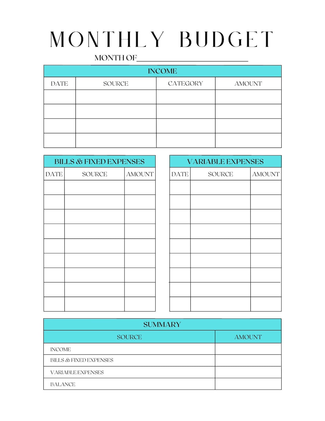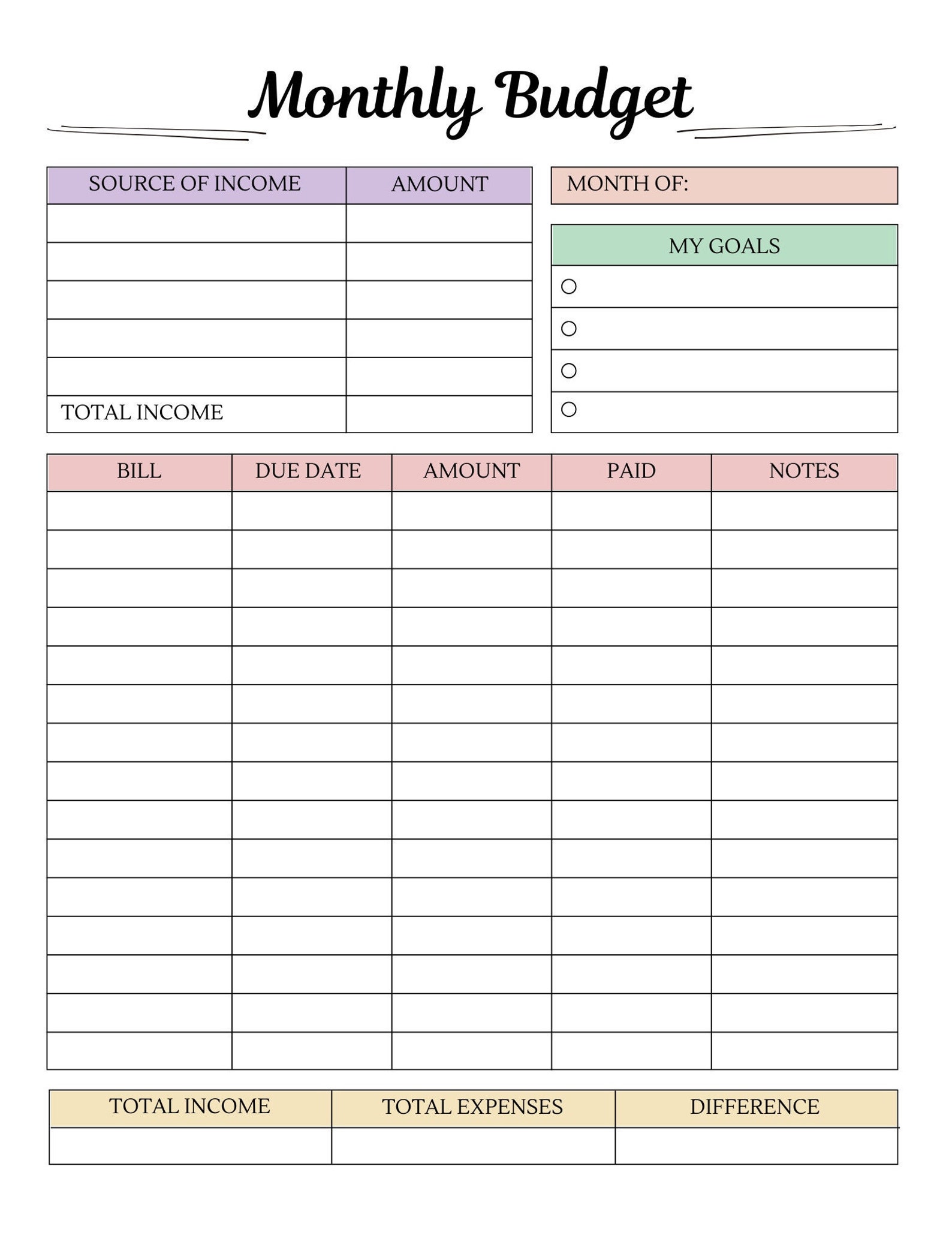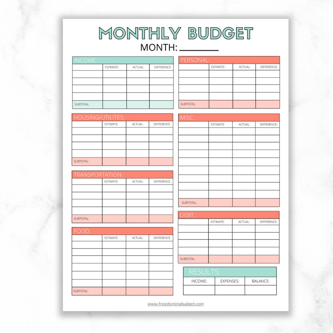 Monthly Budget Printable Pen Paper Budgeting Etsy