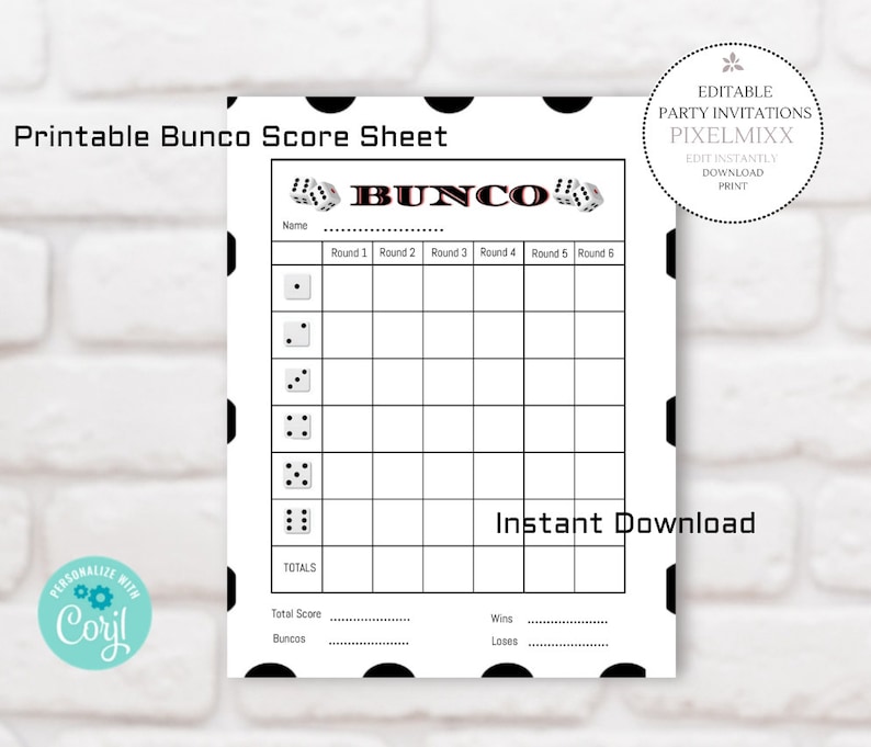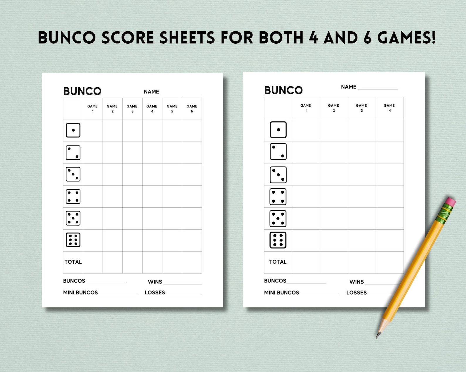 Printable Bunco Score Sheet Bunco Party Two Sizes in 8 5 X 11 Inch