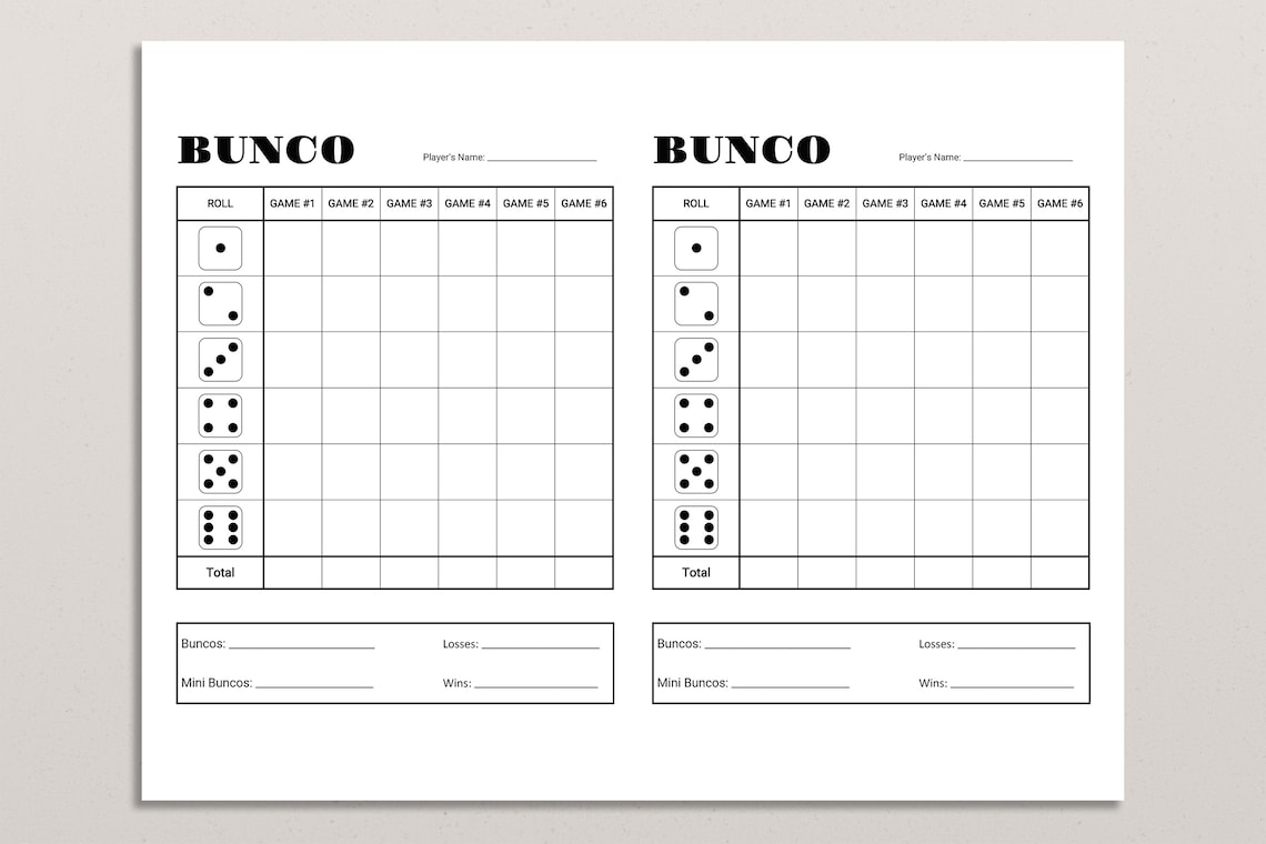 Bunco Scoresheet Bunco Printable Scorecards Minimalist Bunco Printable