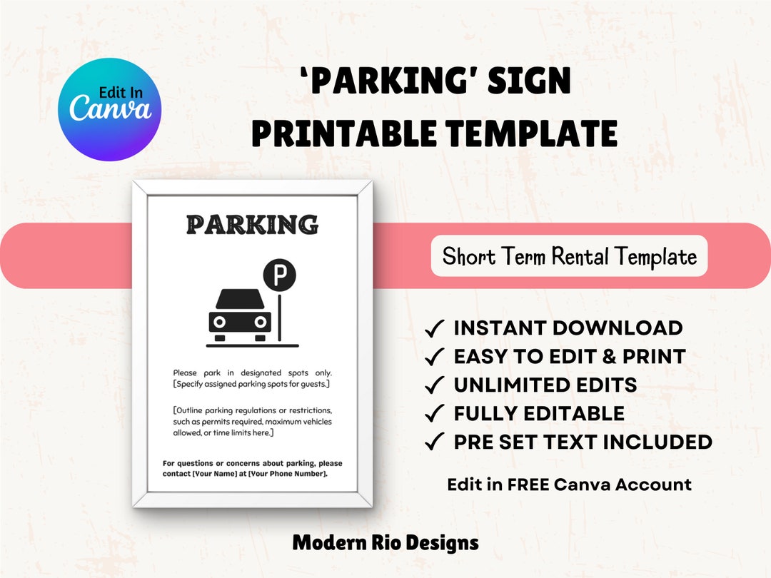 Guest Parking Sign Editable Airbnb Sign Where to Park Sign Short