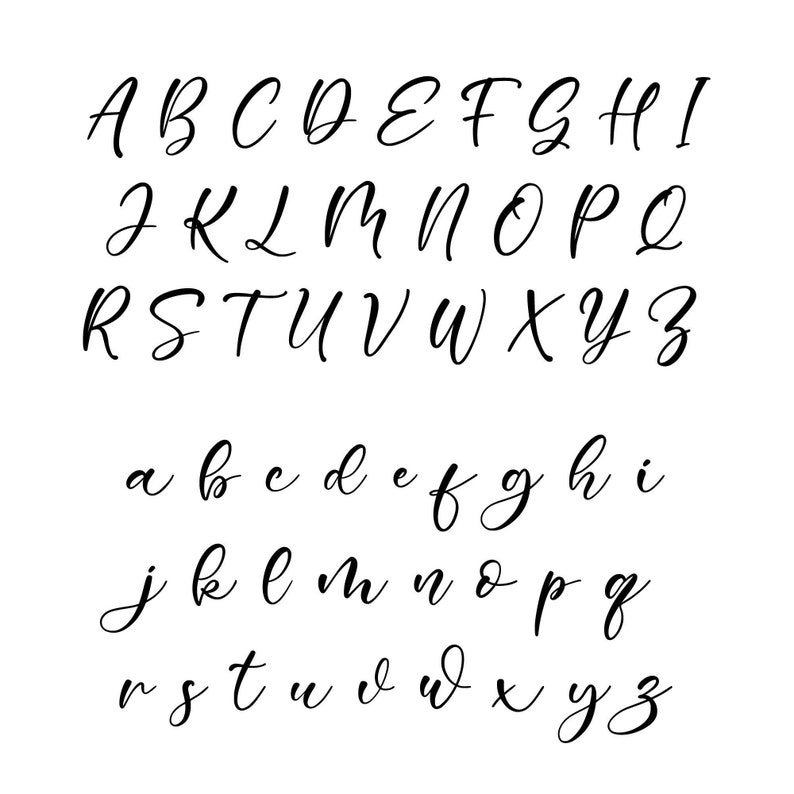 Hand written lowercase and uppercase calligraphy alphabet modern