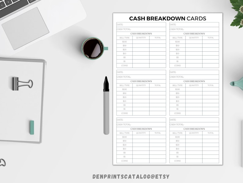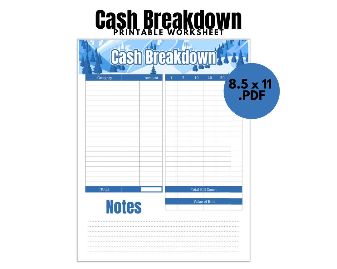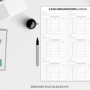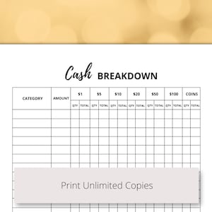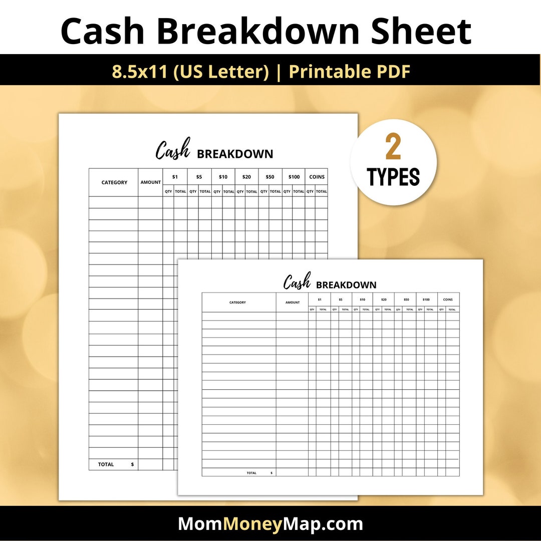 Cash Breakdown Sheet (printable) Etsy