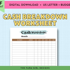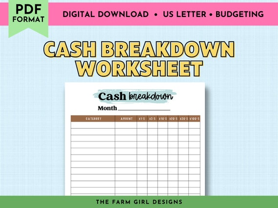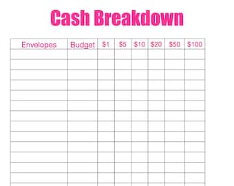 Printable Cash Breakdown Worksheet Cash Envelopes Budgeting Etsy