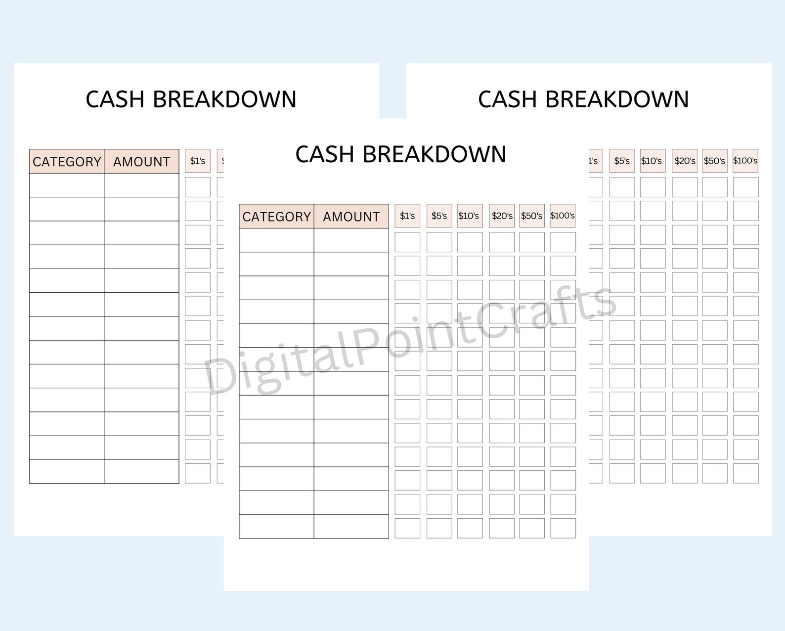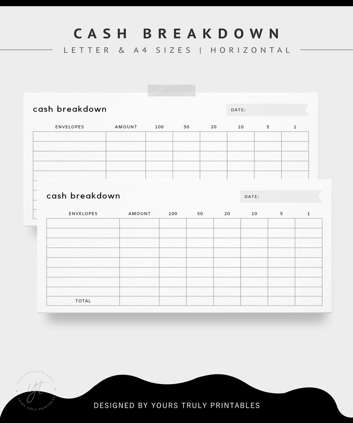 Printable Cash Breakdown Template Cash Breakdown Sheet Cash Etsy