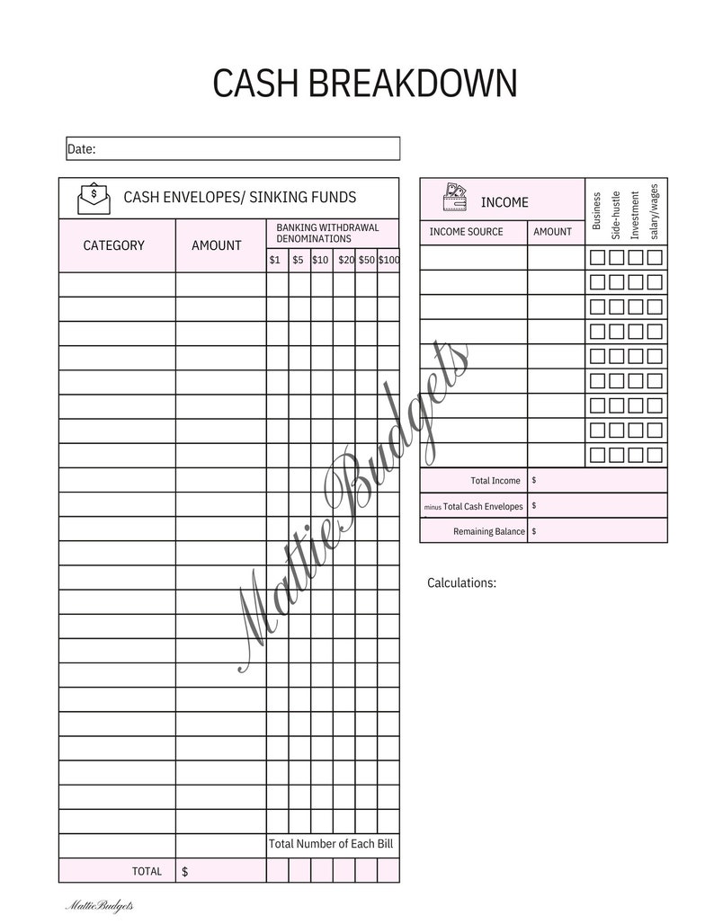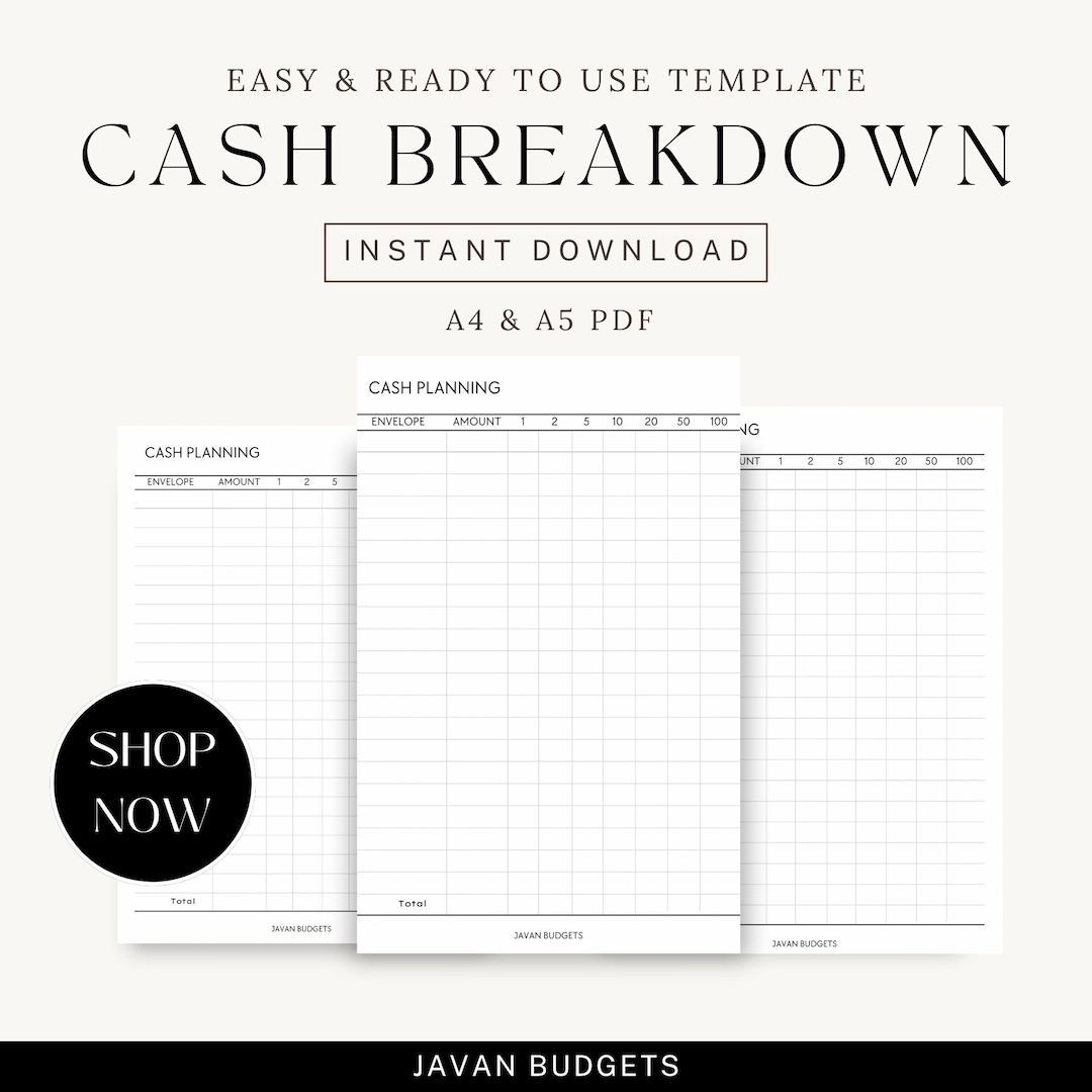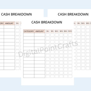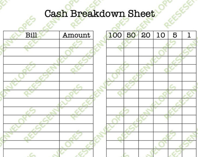 Printable Cash Breakdown Sheet PDF Money Breakdown Form by Etsy
