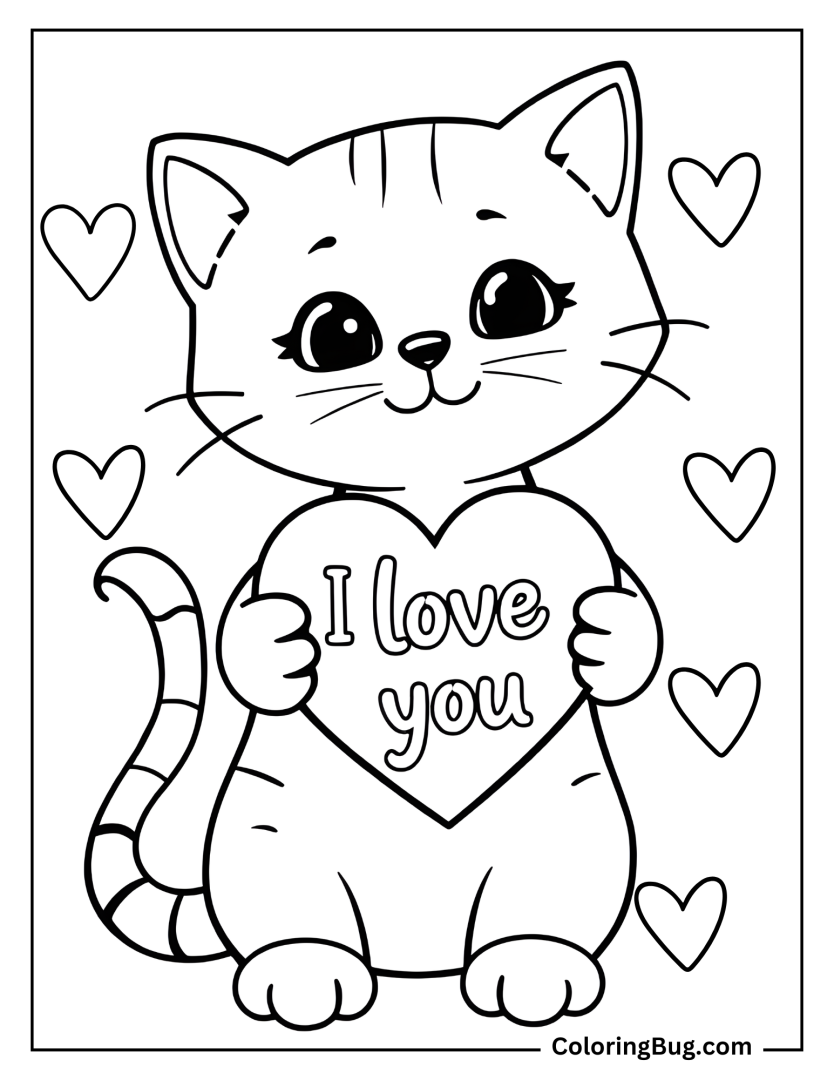 20 Cat Valentines Coloring Pages (Free Printable PDFs)
