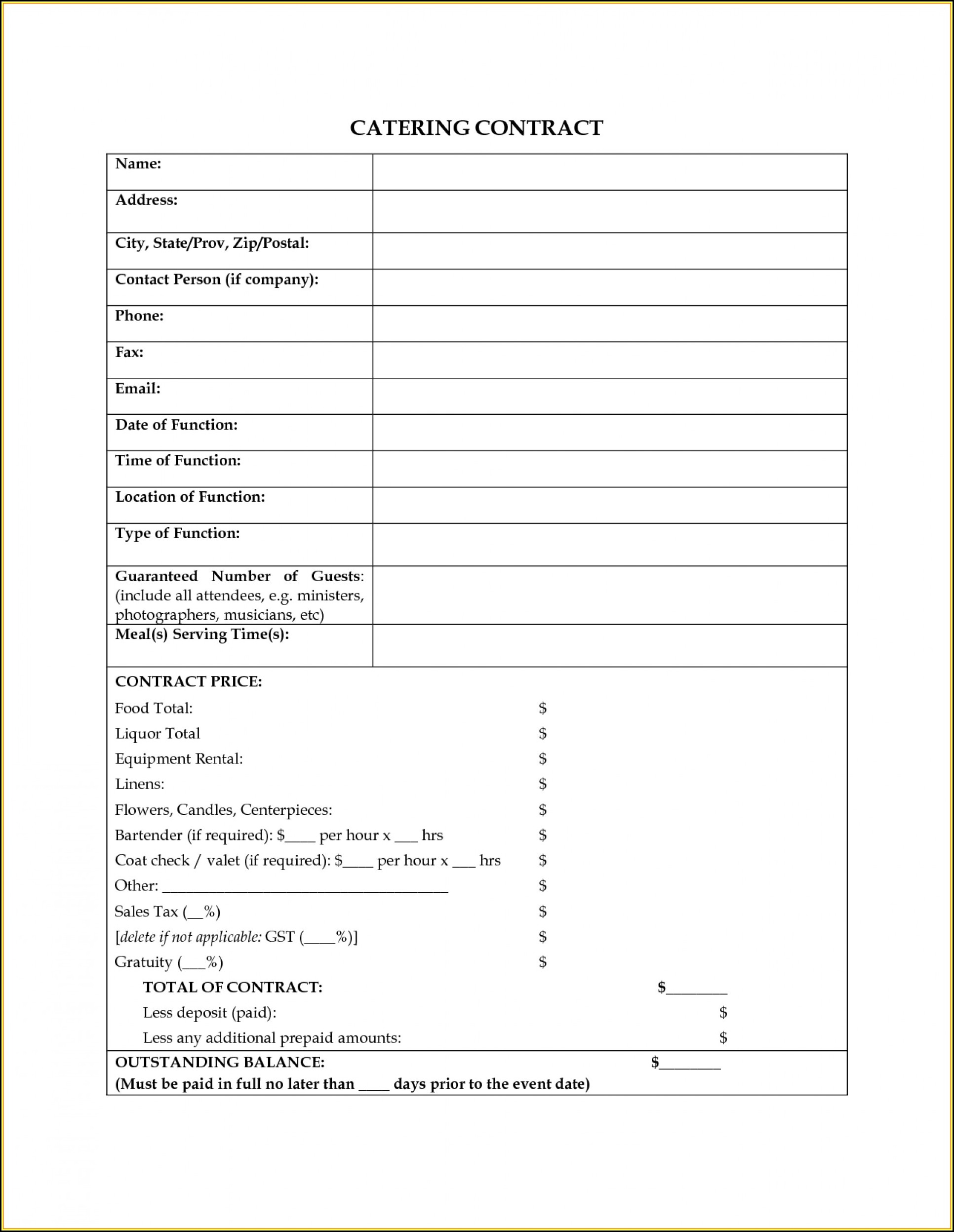 Free Printable Catering Contract Forms