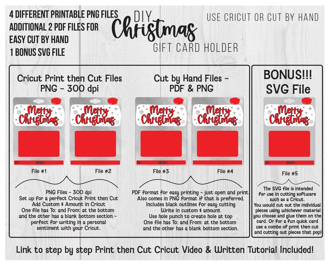 Printable Christmas Gift Card Holder Template Bundle Holiday Gift Card