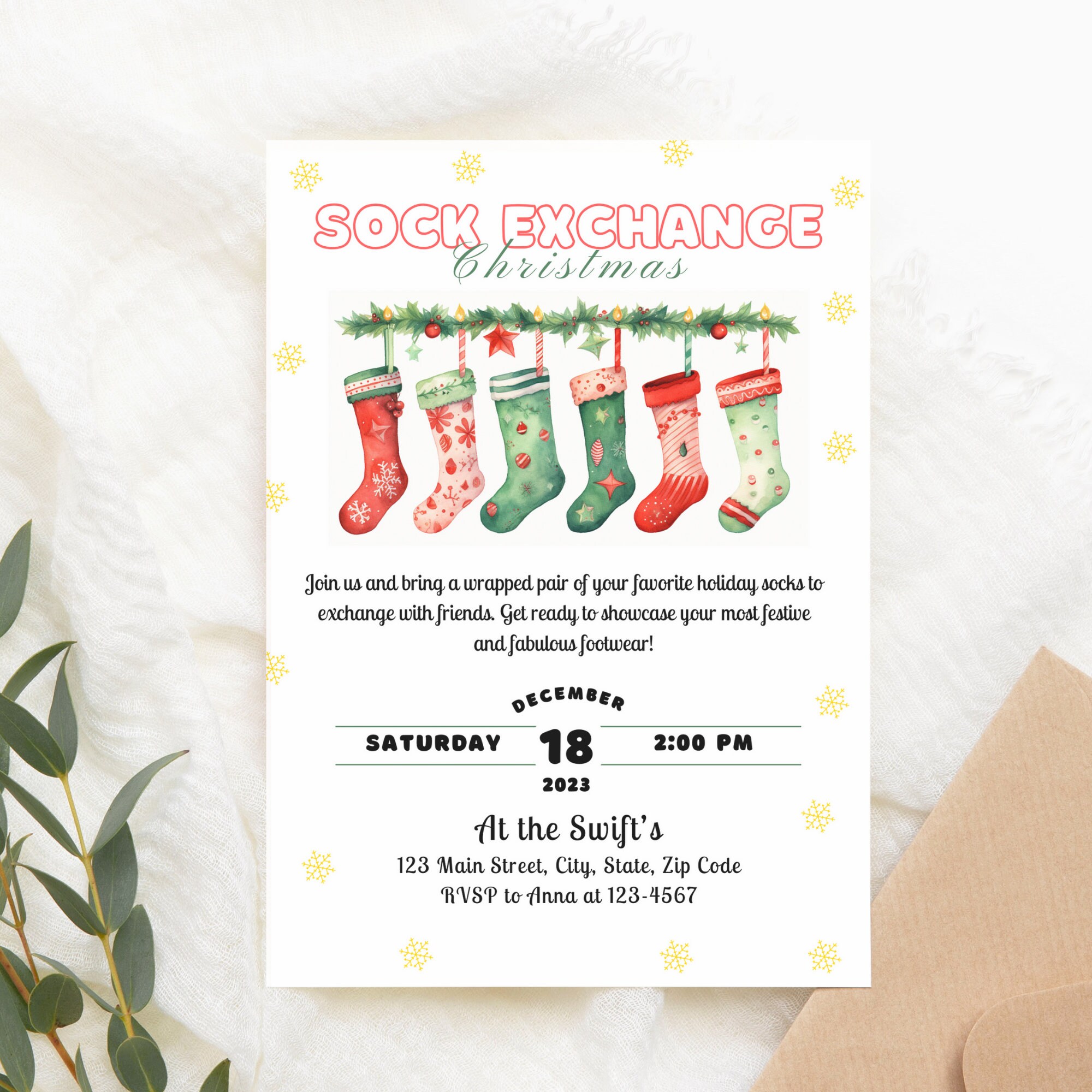 Christmas sock exchange invitation Template PosterMyWall