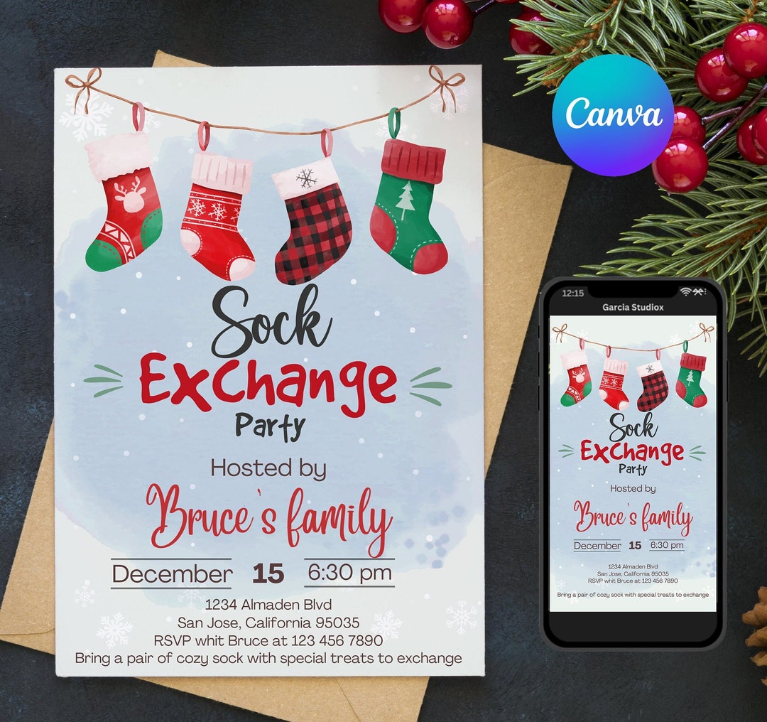 Editable Sock Exchange Christmas Party Invitation Printable Etsy