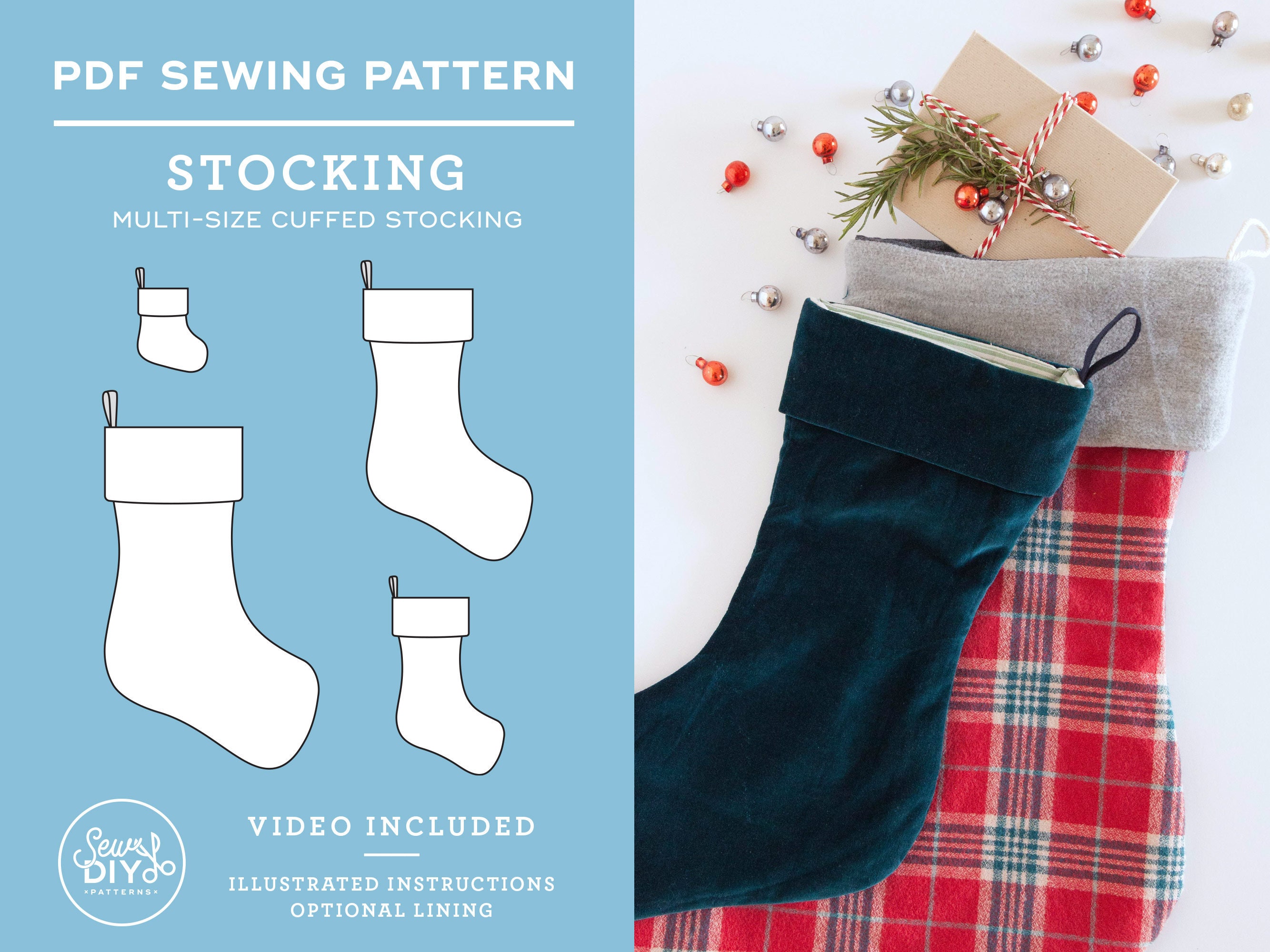 Christmas Stocking Sewing Pattern Digital PDF Pattern Three Sizes Xmas