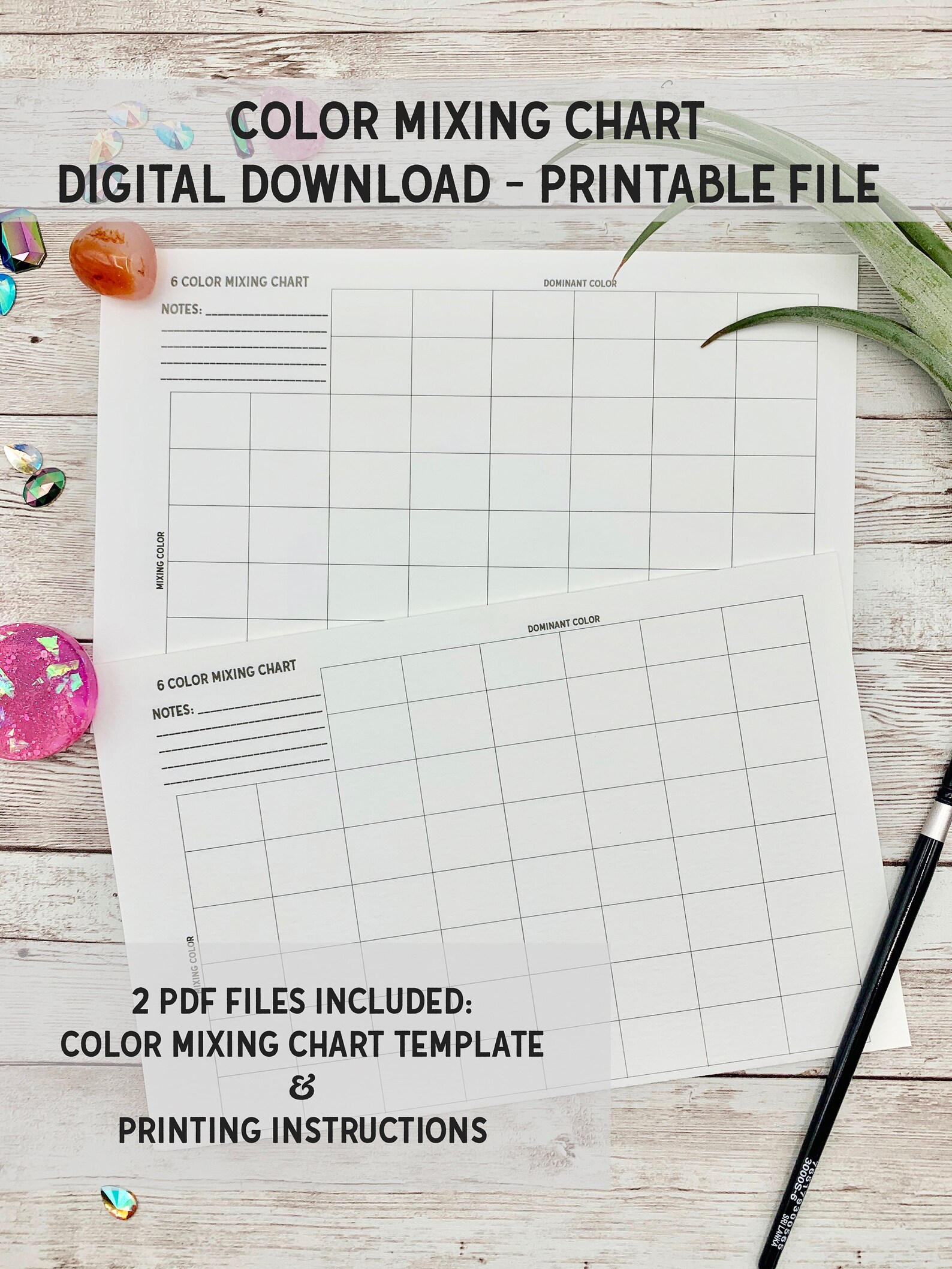 2 Color Mixing Combination Chart Sheet Printable PDF Download Etsy
