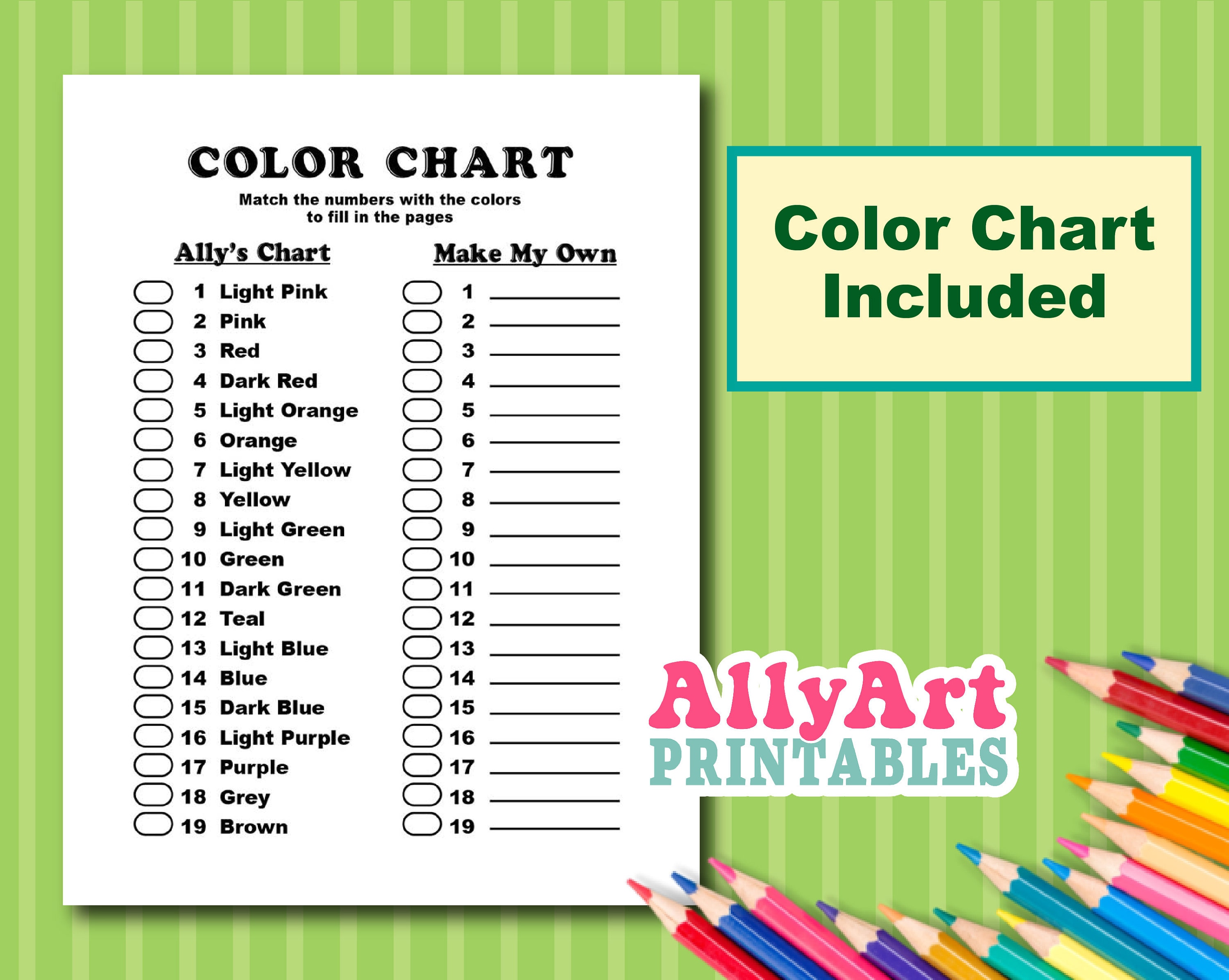 Printable Color Swatch Chart Pack for Colored Pencils Markers DIY
