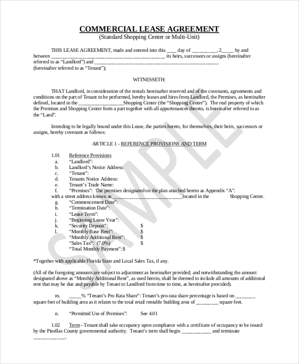FREE 9 Sample Commercial Lease Agreement Forms in PDF Word