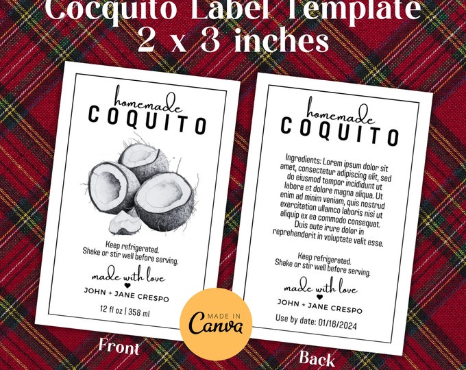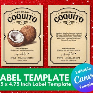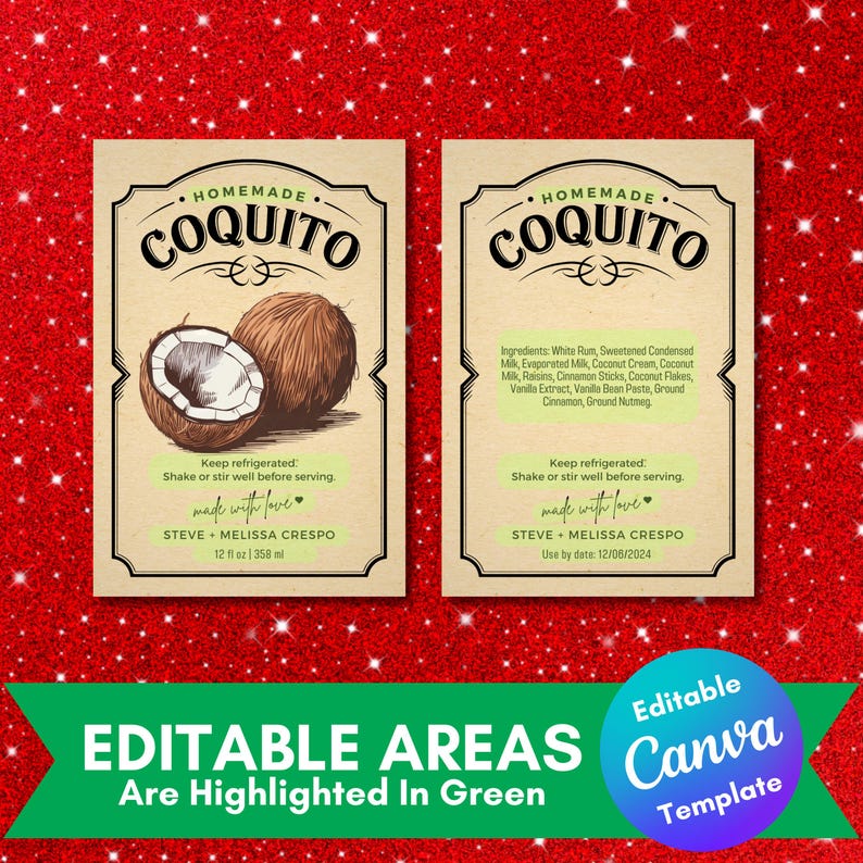Customizable Coquito Label Template in Canva Etiqueta De Coquito