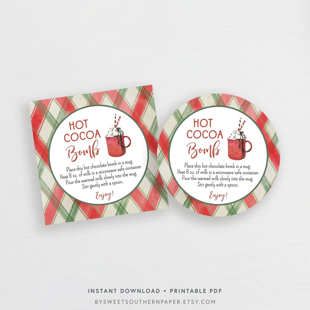 Printable Hot Cocoa Bomb Tag or Sticker Christmas Hot Etsy