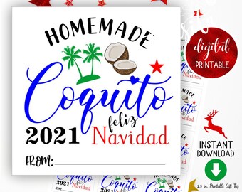 Coquito Feliz Navidad Printable Gift Tag Labelpuerto Rican Etsy