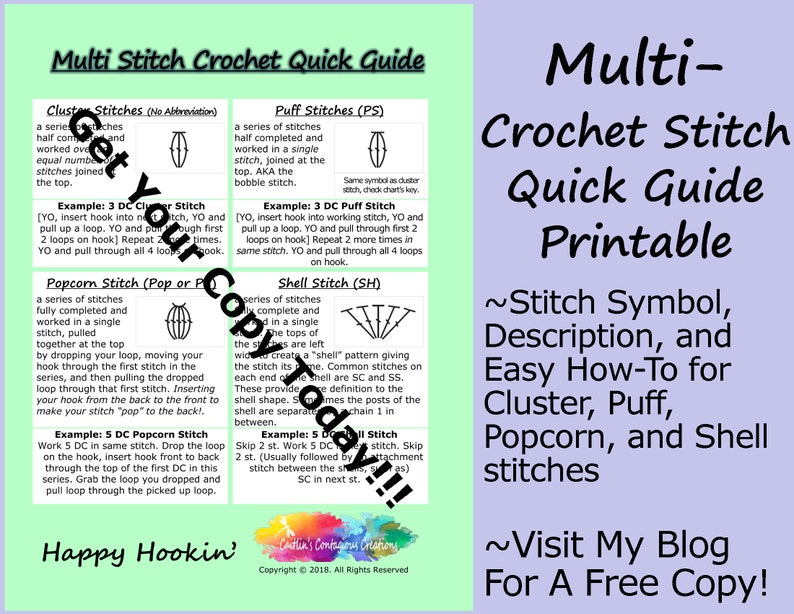Multi Crochet Stitch Printable Quick Guide Etsy