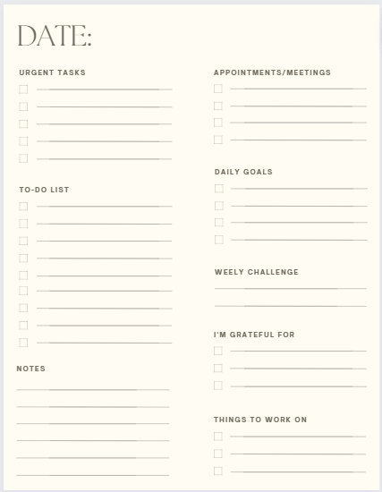 Free Printable Daily Productivity Planner