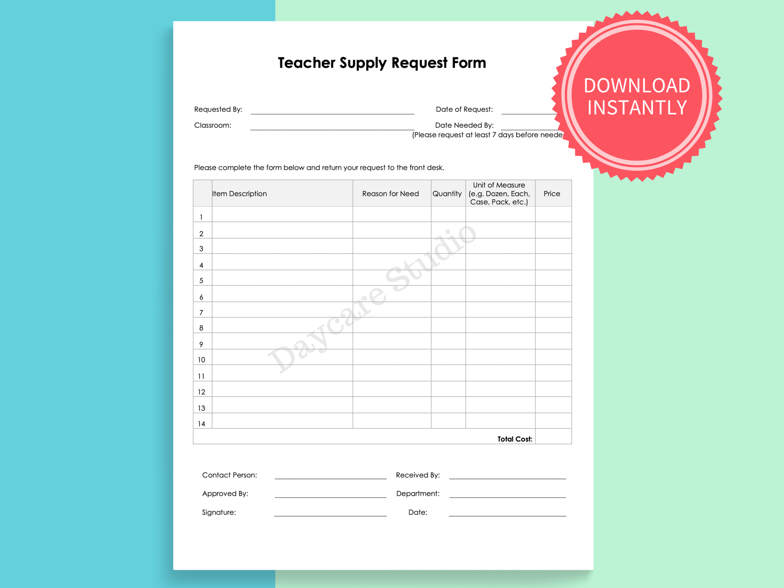 Free printable daycare forms Artofit