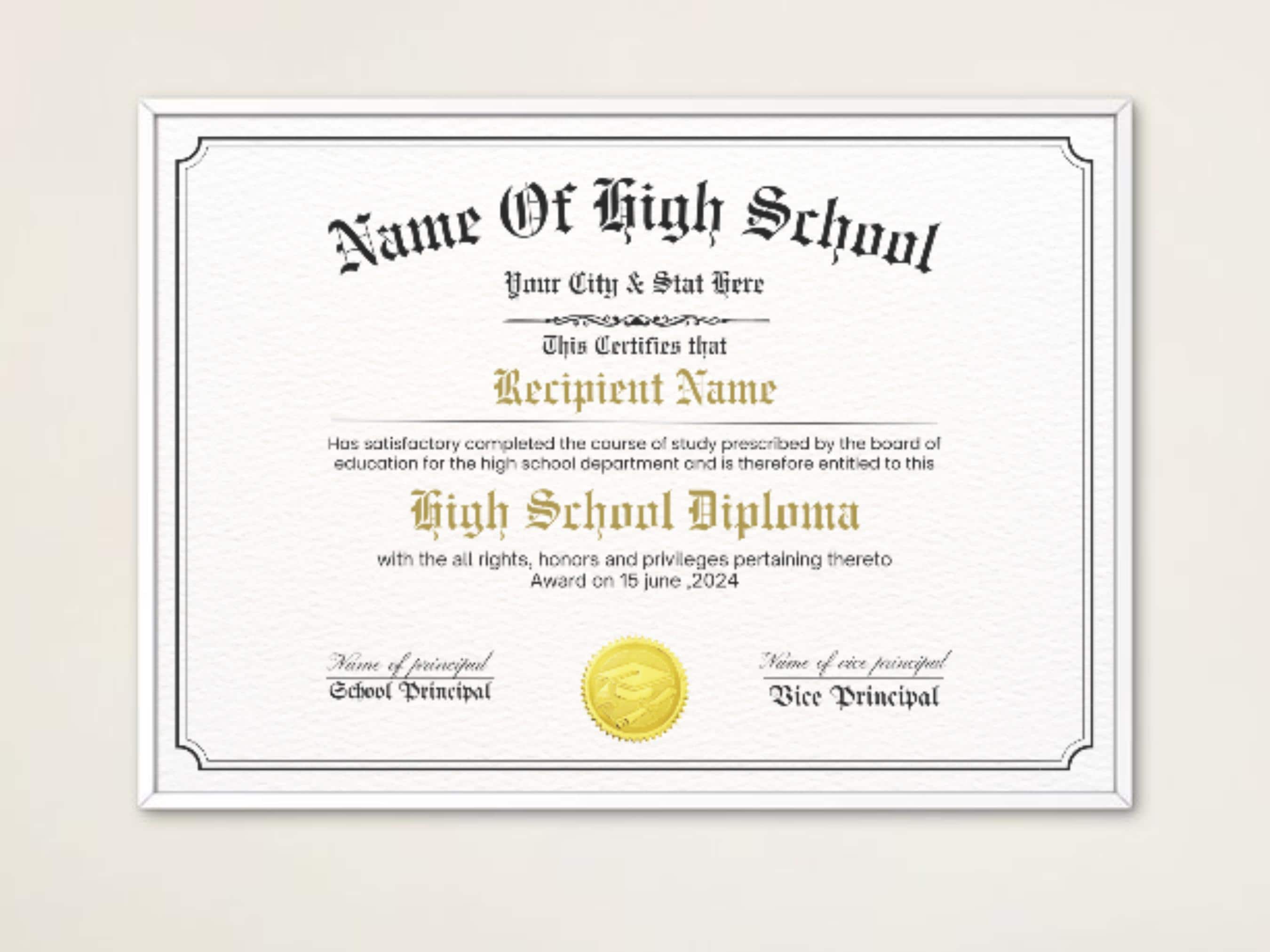 Printable High School Diploma Template: Customizable Replica (digital